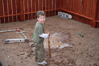 hey that friend of gavin's looks awful familiar :) i can't believe how old gavin looks in the first photo standing by the mud pile :) this is classic! i love it! good luck gettin' it clean it never wants to come out of the cinderblock grooves...we love you boys!!!